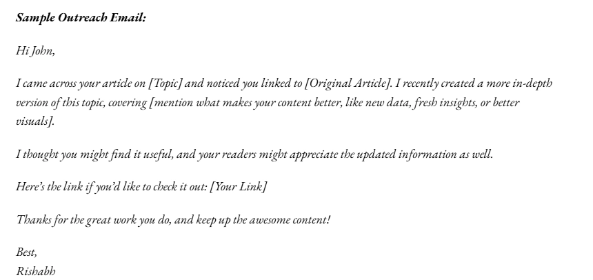 3. Highlight the Value: Clearly explain why your content is better. Maybe it has more up-to-date stats, better visuals, or a more comprehensive guide. Make it clear why linking to your version would benefit their readers.