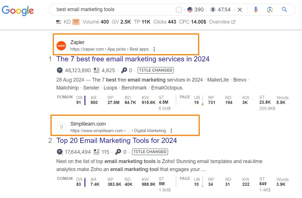 Start by typing your main keywords into Google. The websites that appear on the first page are your key competitors. For instance, if you search for “best email marketing tools,” those top results are who you’re competing with.